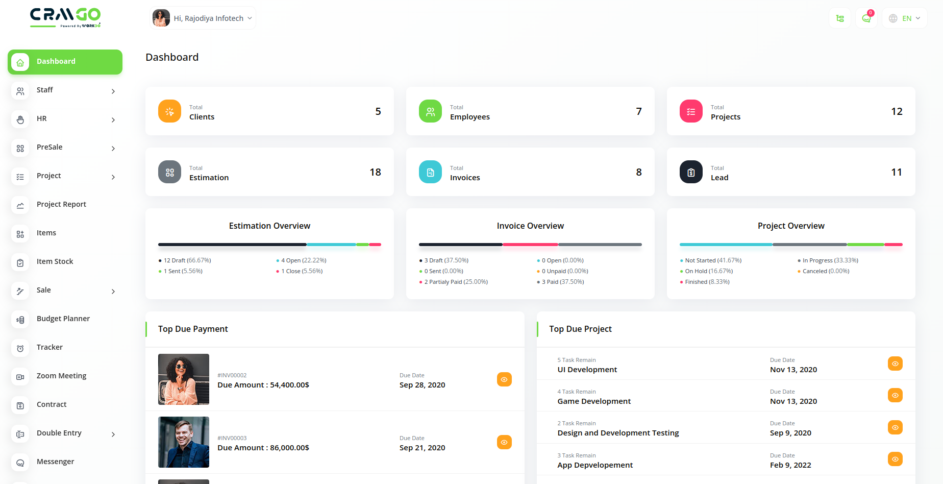 Easy to Use CRM by TheFutureBot for Project Management, Staff Management, Task Management, Client and Billing.